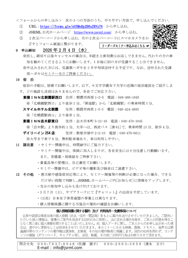 お問い合わせは・・・info@jsrml.com までご連絡ください。