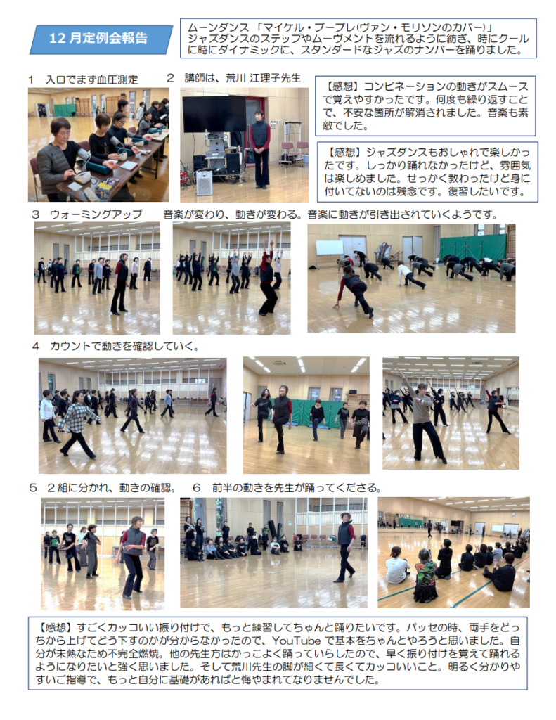 例会の講師は、荒川江理子先生。荒川先生のご指導のもと、久しぶりにジ